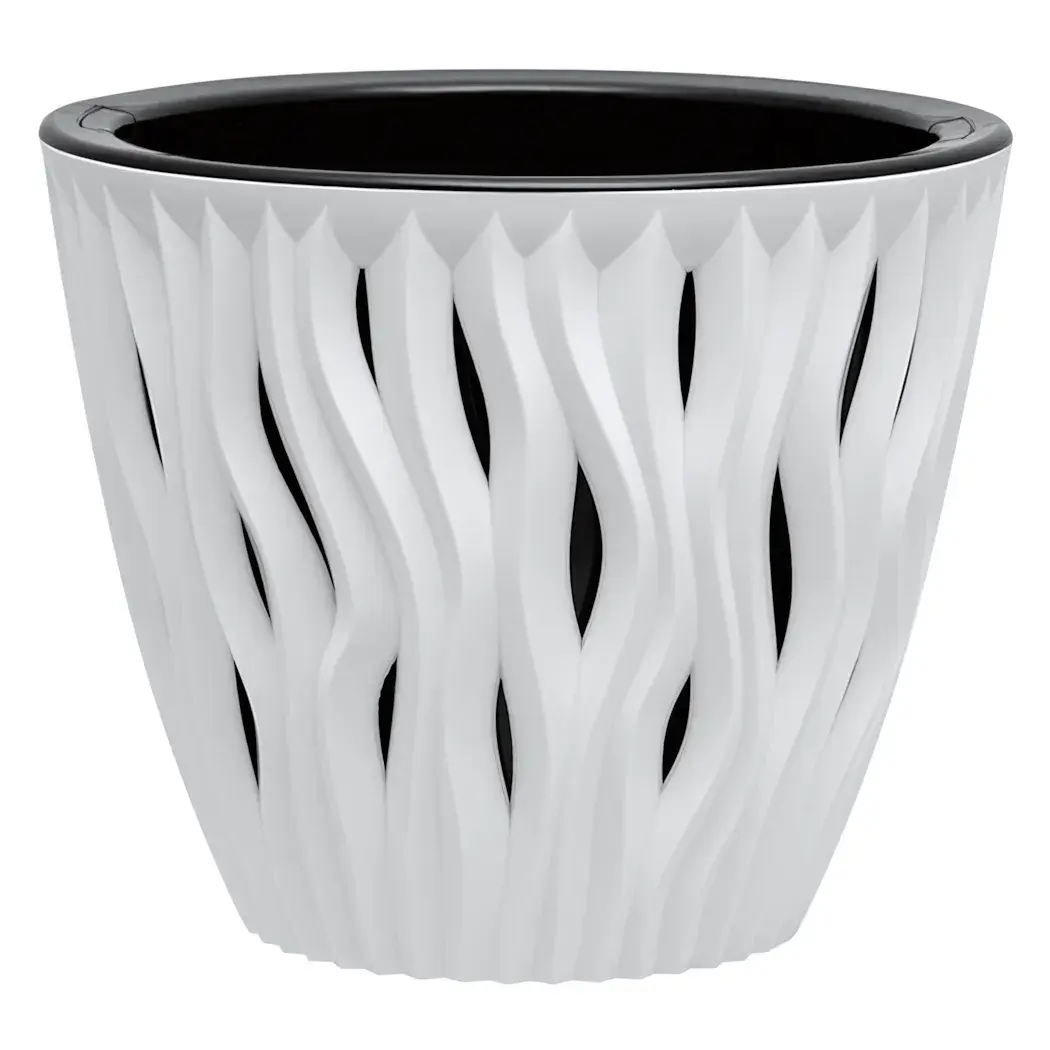 Кашпо выполнено из качественного пластика, что обеспечивает его долговечность и устойчивость к внешним воздействиям. Размеры кашпо составляют 19,5 см в диаметре и 3 литра объема, что делает его идеальным выбором для большинства домашних растений. Белый цвет с черным внутренним слоем создает стильный контраст, который будет привлекать внимание.