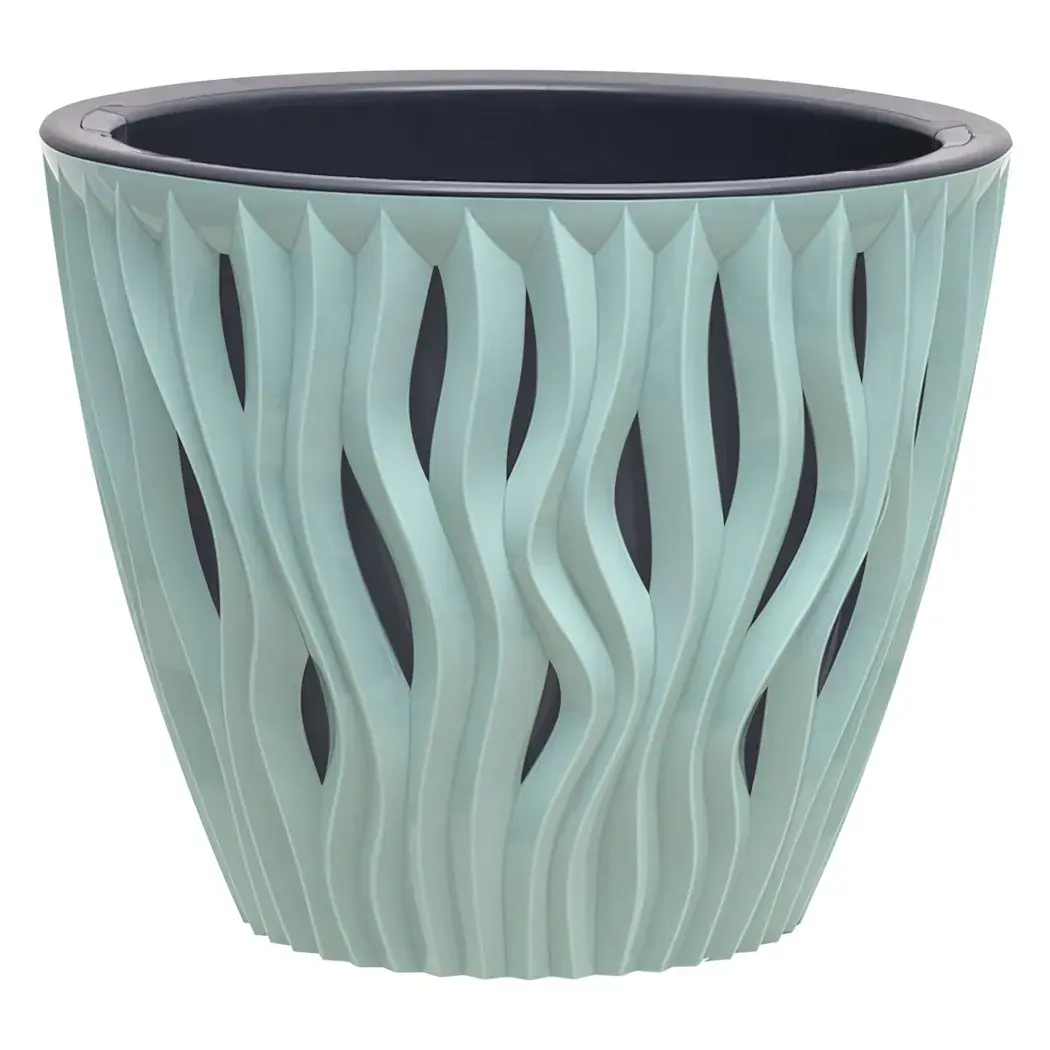 Элегантное решение для вашего интерьера: кашпо серии «Вдохновение» сочетает функциональность и декоративность. Объёмная волнообразная текстура создаёт игру света и тени, а нежный нефритовый оттенок гармонично впишется в любое пространство.