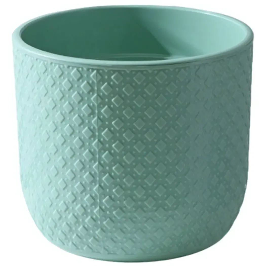 - Цилиндрическая форма и текстурированный рисунок в виде ромбов придают кашпо стильный вид.