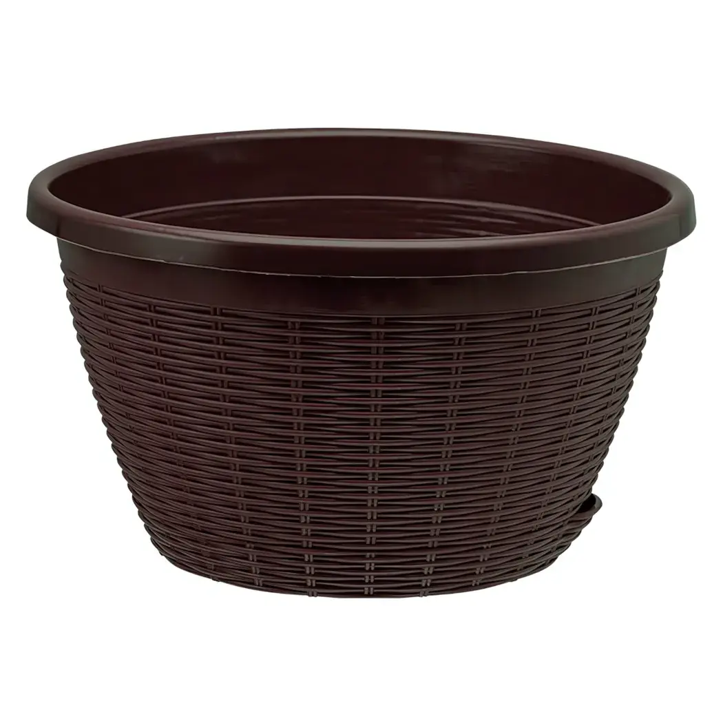 Подвесное кашпо станет идеальным решением для украшения вашего сада или интерьера. Его классический дизайн с текстурой плетения и тёмно-коричневый цвет добавят элегантности и стиля в любое пространство. Благодаря объему 4,5 литра и диаметру 27 см, это кашпо идеально подходит для различных растений, позволяя им расти и развиваться в комфортных условиях.