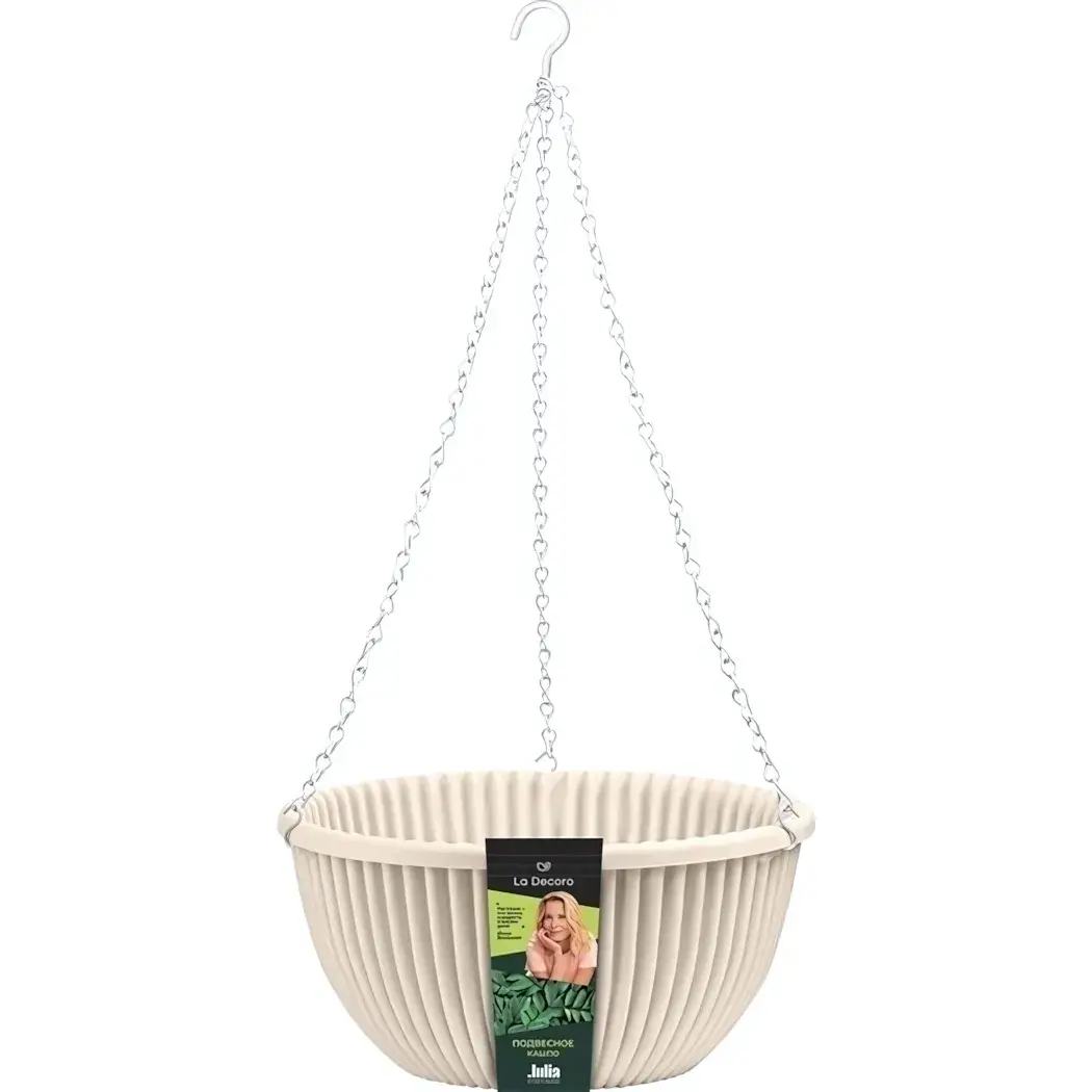 Кашпо пластиковое подвесное 'Верде' 6л d-31см, кремовый с металлическим подвесом