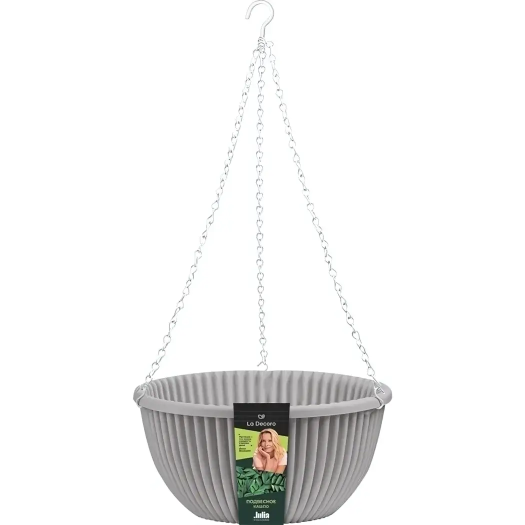 Кашпо пластиковое подвесное 6л, d-31см, серый жемчуг, с металлическим подвесом