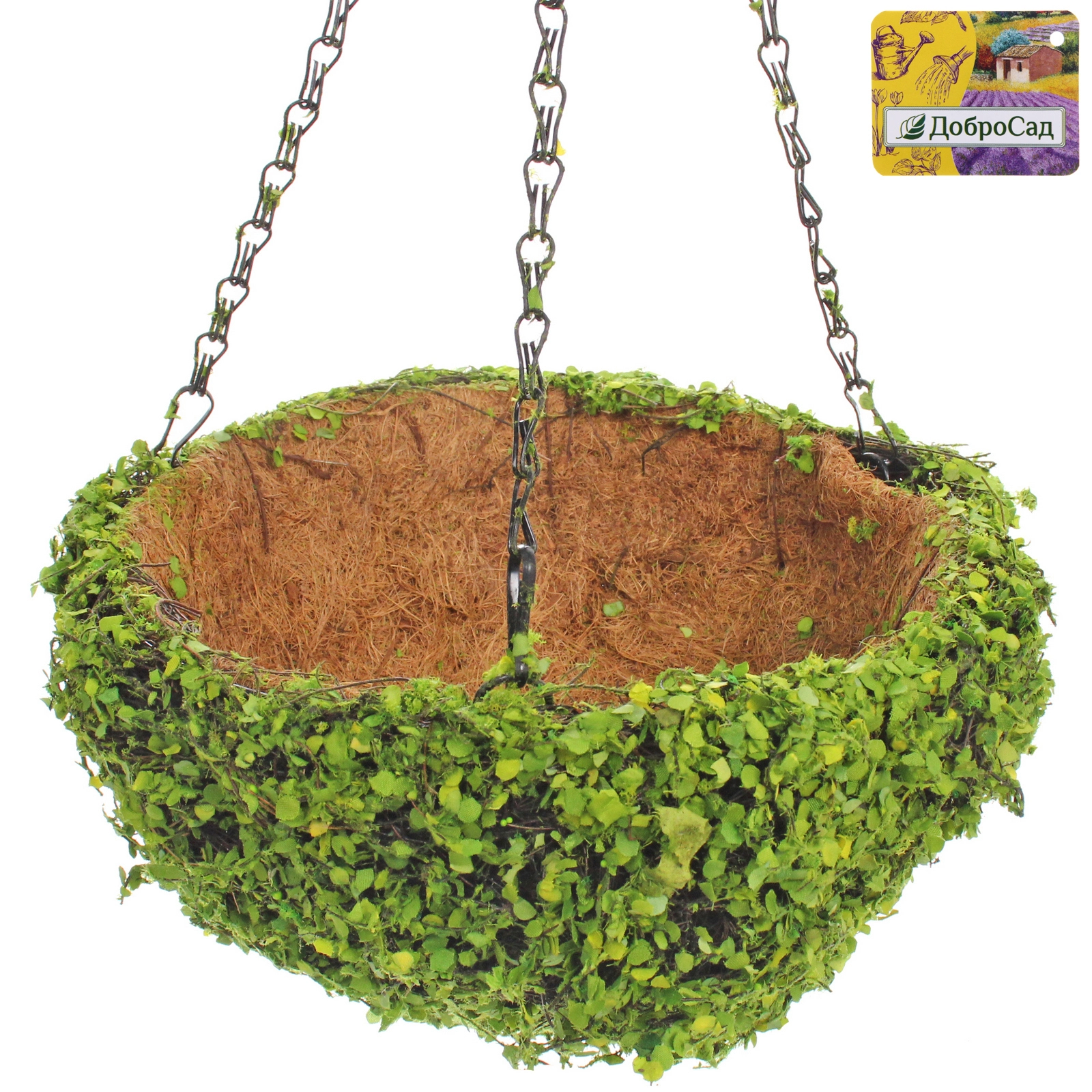 Подвесное кашпо «Сфагнум» — это идеальное сочетание эстетики и функциональности для вашего сада, террасы или балкона. Выполненное из натурального кокосового волокна и декорированное элементами, имитирующими свежую зелень, оно мгновенно преображает пространство, наполняя его атмосферой лесной свежести. Оригинальный дизайн с эффектом живой поверхности из мелких листиков делает это кашпо центральным элементом ландшафтного декора, который гармонично вписывается в любую эко-концепцию.