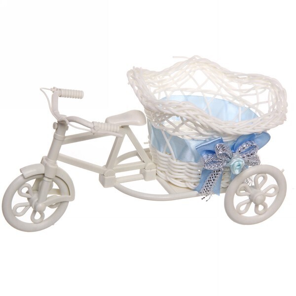 Кашпо декоративное 'Велосипед', 23*12см, белое/голубое, плетеная корзина