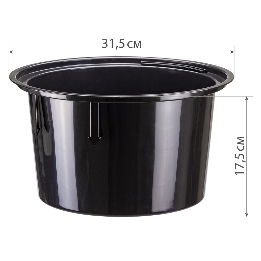 Объём кашпо — 42 л, диаметр — 340 мм, высота — 630 мм. Внутренняя вставка имеет диаметр 31,5 см и высоту 17,5 см. Такие параметры делают модель подходящей для размещения в прихожей, гостиной, на балконе или у входной группы.