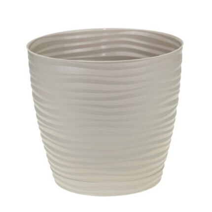 Это кашпо идеально подходит для домашних растений, а также может использоваться как декоративный элемент. Благодаря своей цилиндрической форме и рифлёной поверхности, оно не только красиво выглядит, но и удобно в использовании. Поддон, входящий в комплект, предотвращает протекание и сохраняет чистоту вашего пространства.