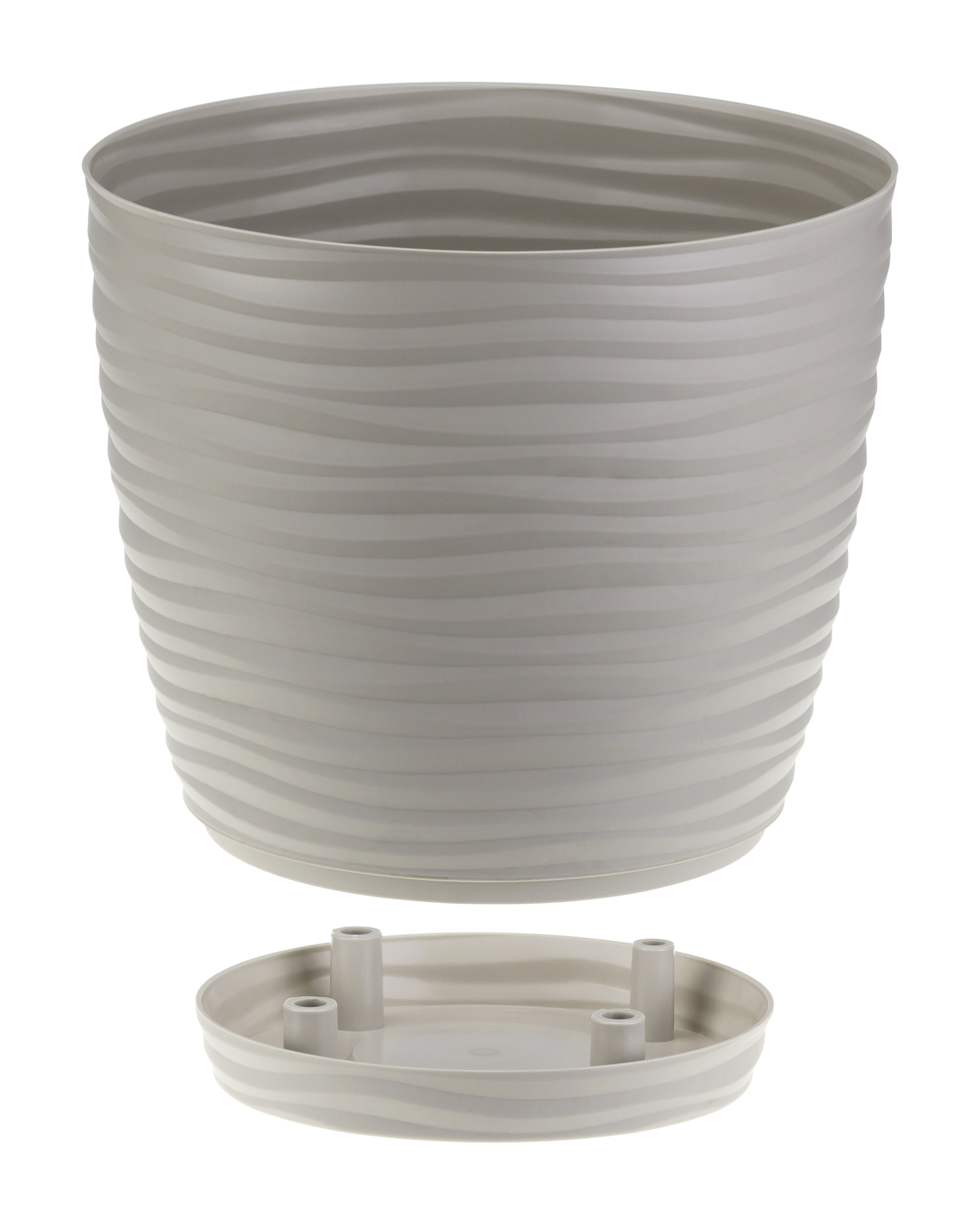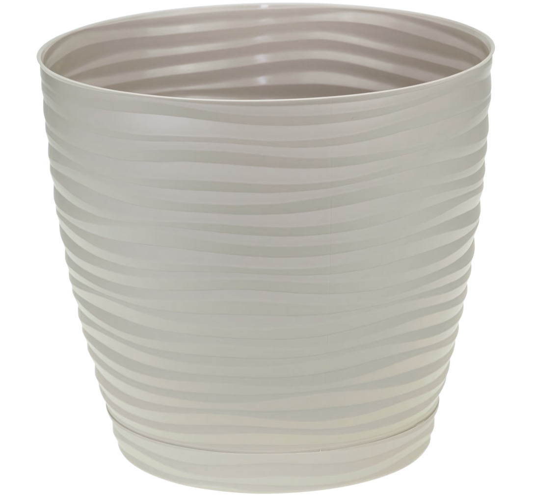 Это кашпо не только функциональное, но и стильное решение для интерьера. Благодаря текстуре «волна» поверхность играет с светом, создавая приятный визуальный эффект, а цвет кремовый легко впишется в любой дизайн. В комплект входит поддон, обеспечивающий защиту поверхности и предотвращающий протекание воды, что особенно важно для комфортного ухода за растениями дома или на улице.