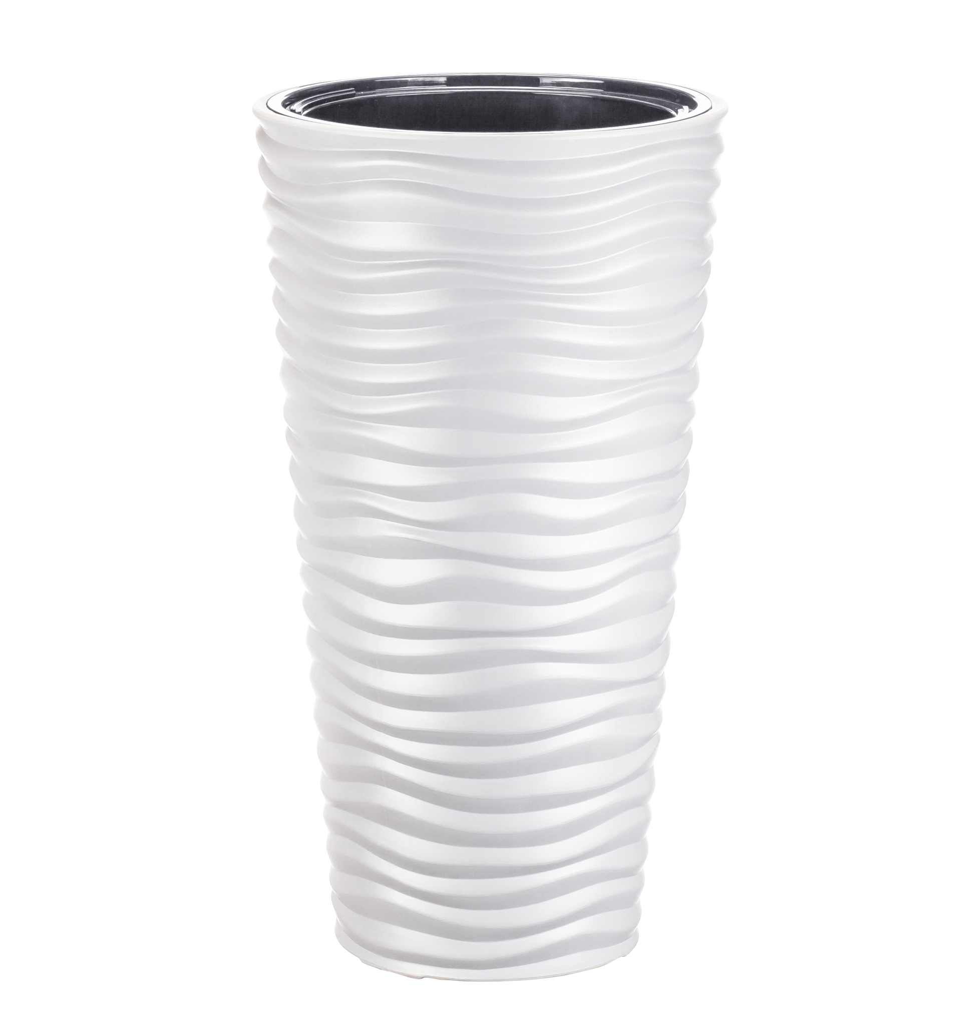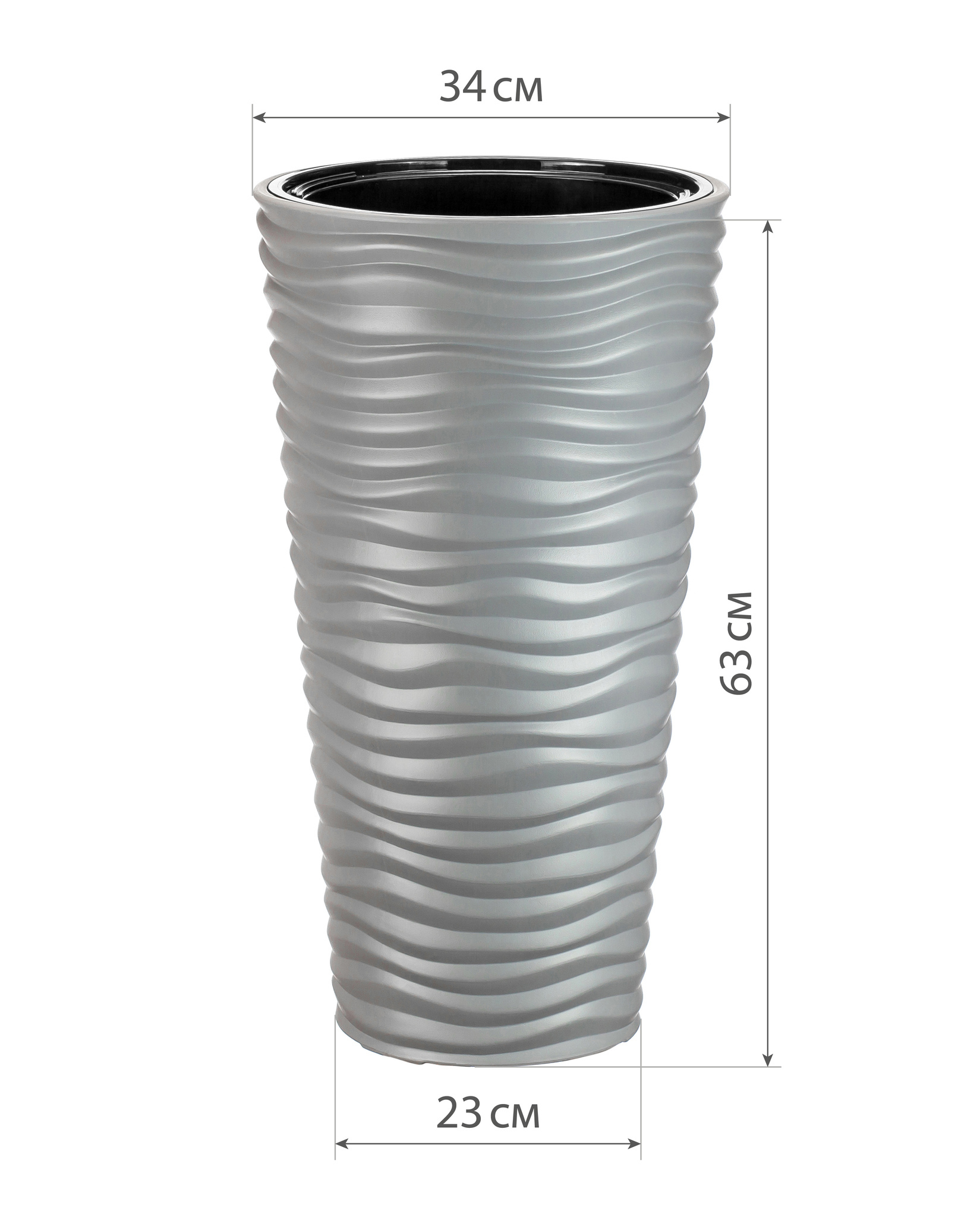 Это кашпо идеально подойдет как для домашних, так и для уличных условий благодаря высокой прочности и морозостойкости материала. Его объем 42 литра позволяет разместить крупные растения или деревья, а размеры (ширина 340 мм, высота 630 мм) делают его универсальным для различных пространств. Полиэтилен с волнистой текстурой создает эффектные блики и придает изделию особый шарм, подчеркивая ваш интерьер или ландшафт.