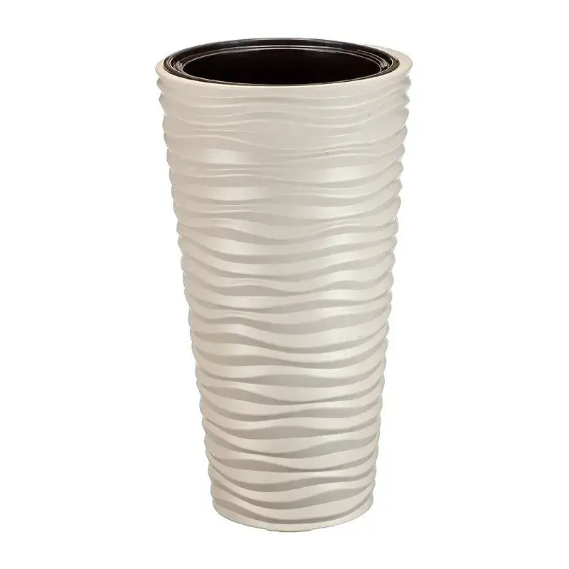 Кашпо пластиковое 'ДЮНА' D340мм H630мм, кремовый цвет, морозостойкое
