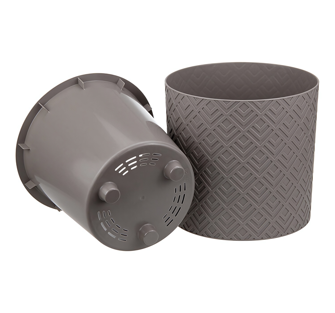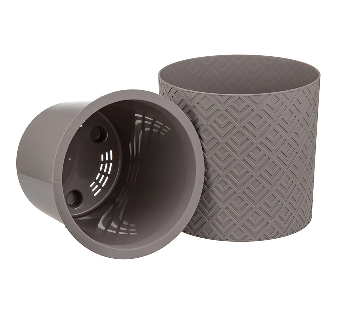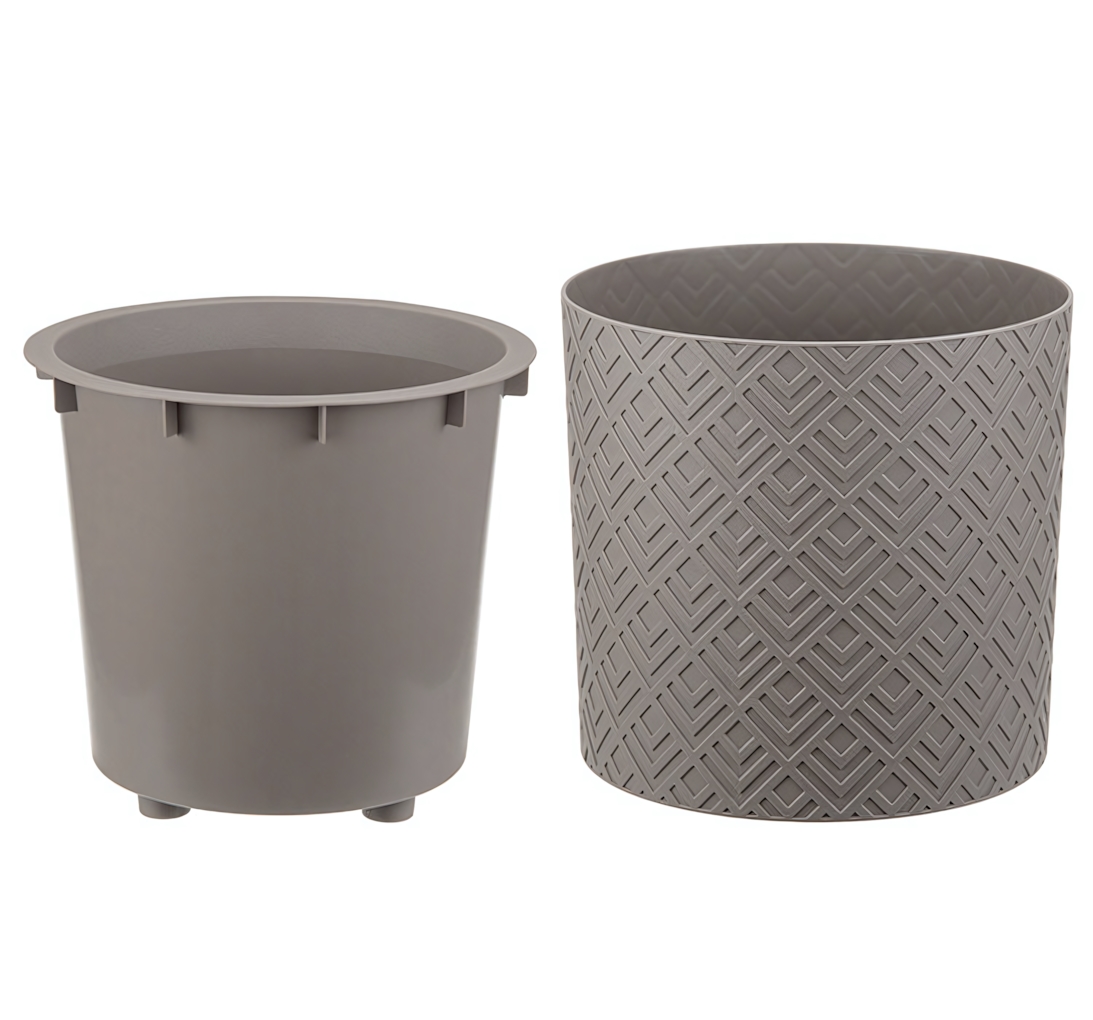 Кашпо пластиковое с внутренней вставкой и дренажом, диаметр 28 см, высота 27 см, объем 9,5 л, цвет французский серый