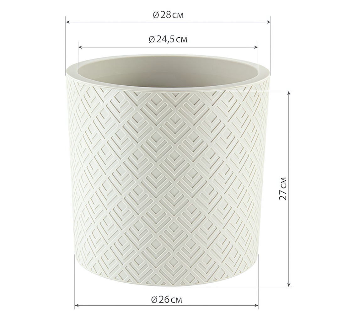 Кашпо сочетает функциональность и эстетику: внутренняя техническая вставка заменяет поддон, а геометрический узор добавляет интерьеру средиземноморский шарм. Воздушная прослойка между стенками обеспечивает терморегуляцию корней, продлевая здоровье растений.