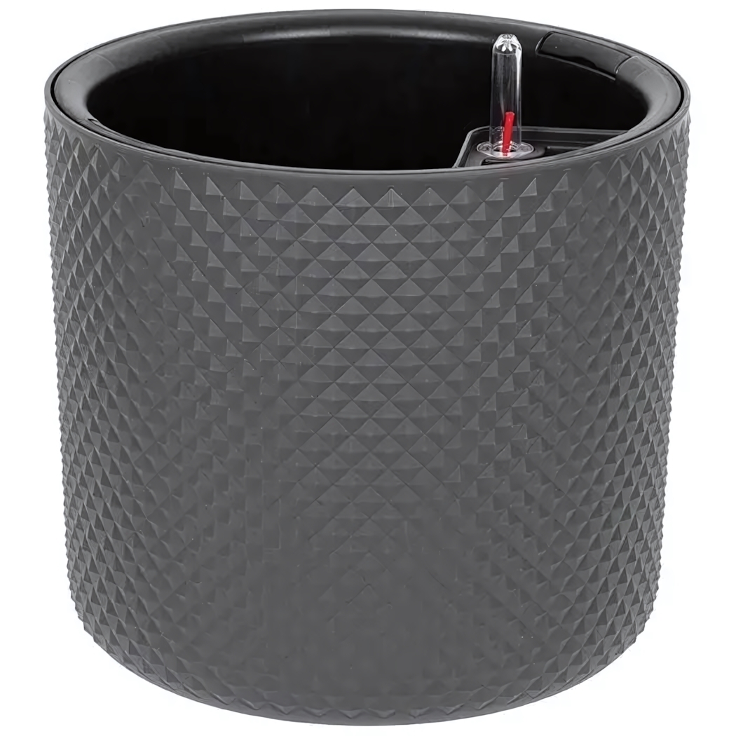 Графитовый цвет гармонирует с современным интерьером и ландшафтным дизайном. Ребристые грани создают эффект 3D-текстуры, маскируя типовую форму пластикового горшка. Совместимо с дренажными системами и фитильным поливом.