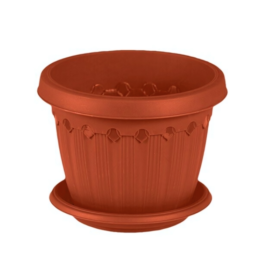 Кашпо "Флавия" объёмом 3 литра с поддоном в терракотовом цвете — это не просто контейнер для цветов, а стильный элемент декора, который добавит уют в ваш дом. Благодаря рифлёной текстуре, это кашпо станет настоящим украшением вашего интерьера, а его практичность и удобство использования сделают уход за растениями простым и приятным.