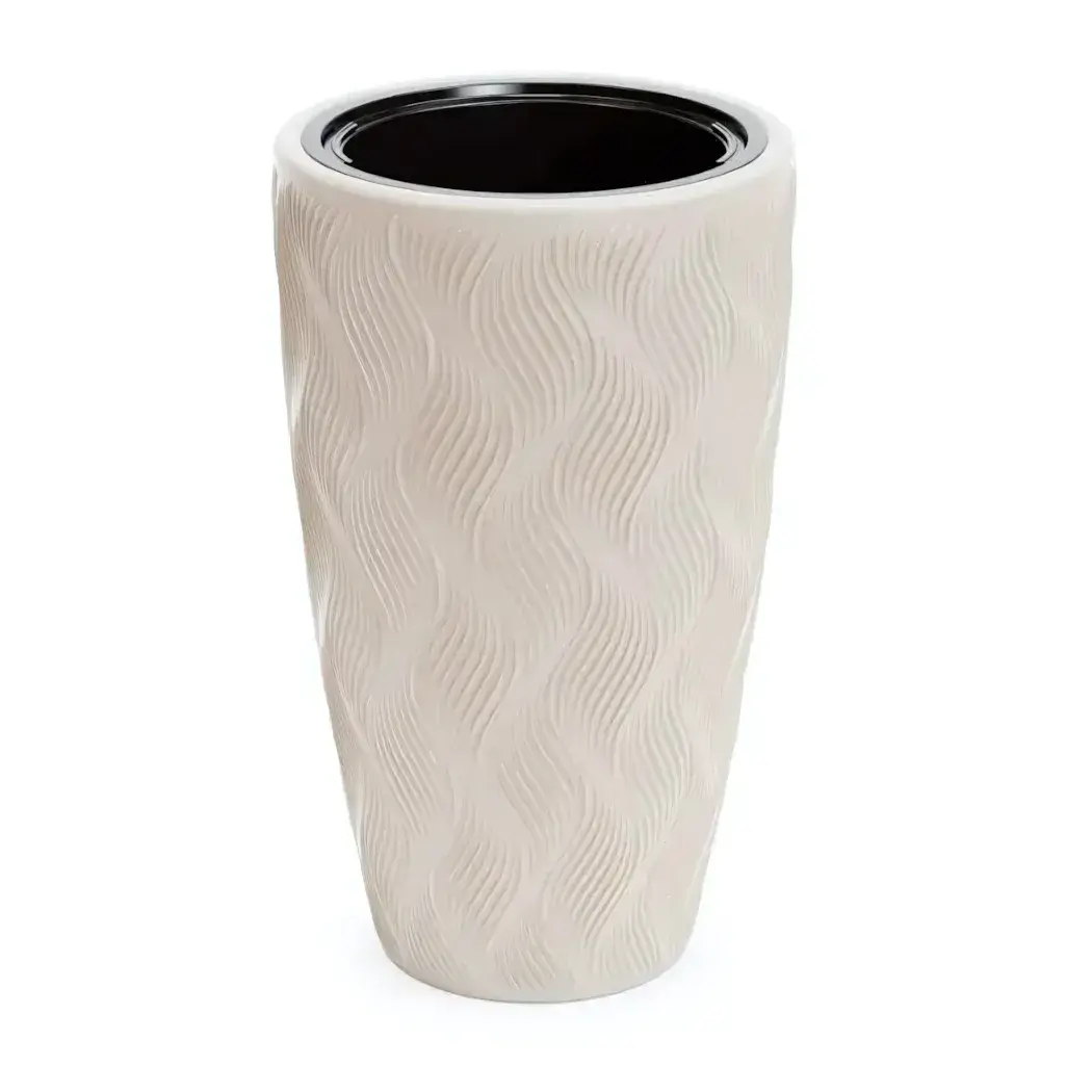 Подарите растениям достойное обрамление: двухуровневая система с рельефным орнаментом сочетает функциональность и эстетику. Волнообразные линии на поверхности создают игру света и тени, превращая обычный горшок в элемент ландшафтного декора.