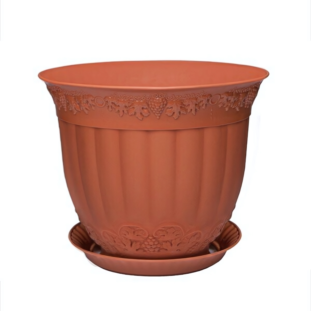 Удобный поддон помогает предотвратить протечки и сохранить чистоту окружающей поверхности. Горшок легко моется и подходит для использования как в помещении, так и на улице. Цвет — терракотовый, универсальный и гармонично сочетается с различными стилями декора.