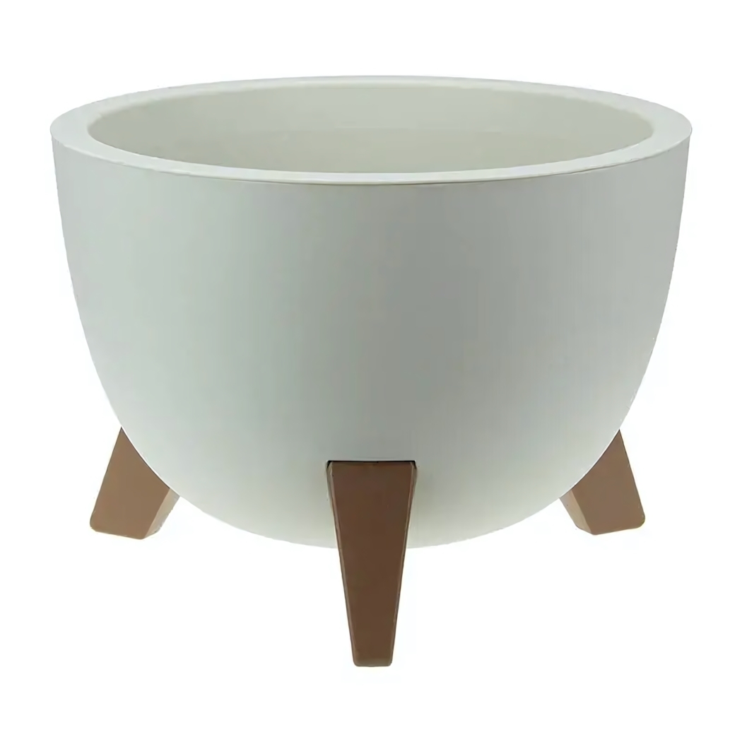 Декоративное кашпо 'ФЛОРИАН' с деревянными ножками, диаметр 350 мм, объем 12 л, белое