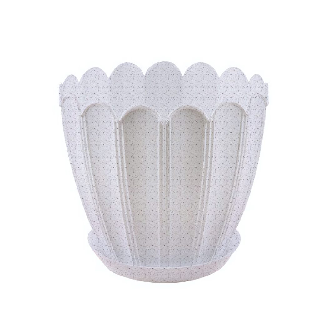 Это кашпо станет настоящим украшением вашего интерьера и поможет создать уютную атмосферу. Его светло-белый цвет с мелкими точками добавляет текстуру и стиль, а округлая форма с рифленой текстурой делает его универсальным для любых растений. Используйте его как в помещении, так и на открытом воздухе, чтобы подчеркнуть красоту ваших цветов.