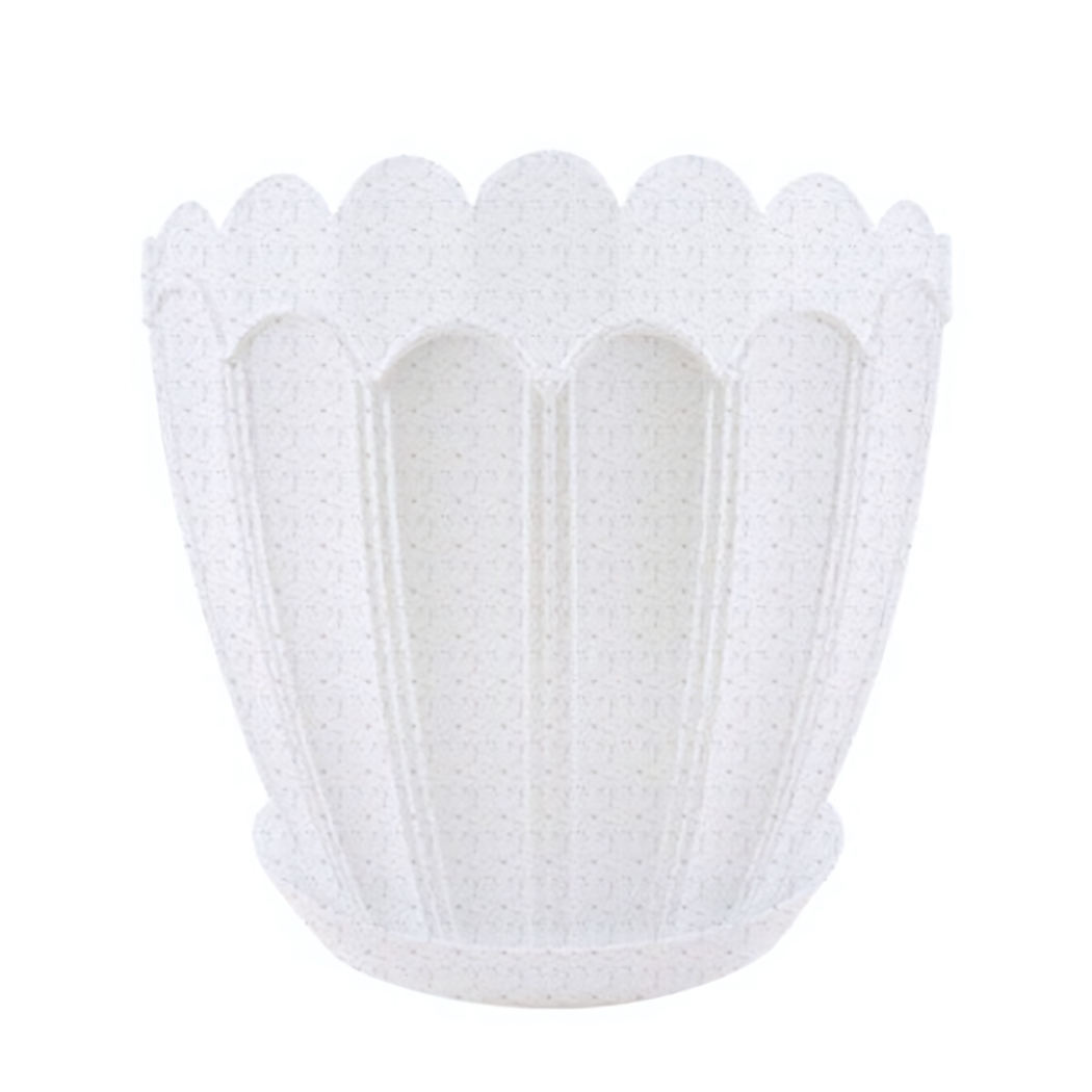 Кашпо имеет круглую форму с волнистым краем и узорчатой поверхностью, что придает ему уникальный вид. Его размеры позволяют разместить в нем растения средней величины, а белый цвет легко комбинируется с другими элементами декора. Не упустите возможность сделать ваш дом более уютным и стильным с кашпо "Хризантема"!