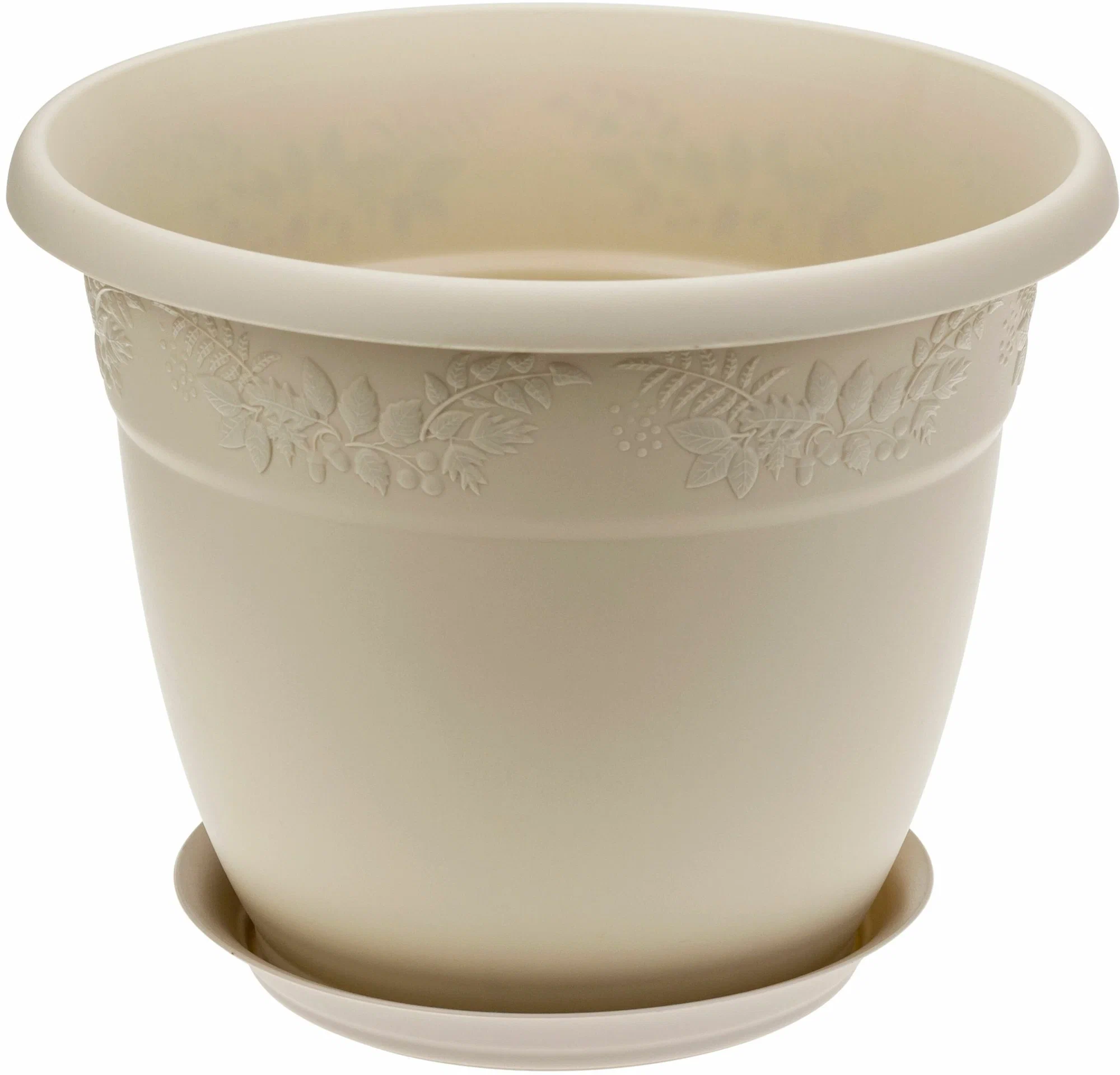Выбирая кашпо "Italy", вы получаете не только стильный элемент декора, но и практичное решение для ухода за растениями. Пластиковый материал обеспечивает долговечность и легкость, а матовая текстура добавляет элегантности. Рельефное изображение цветка на стенке кашпо придает ему уникальность и шарм.