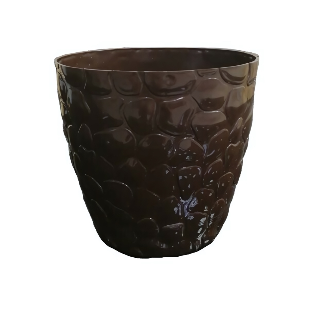 Кашпо "КАМЕШКИ" №3 в цвете шоколад — это не просто горшок для растений, а стильный элемент декора, который добавит уют и гармонию в ваш дом. Его уникальный рельефный узор, напоминающий камешки, привлекает внимание и создает атмосферу естественности. Это кашпо станет отличным решением для тех, кто ценит комфорт и качество.