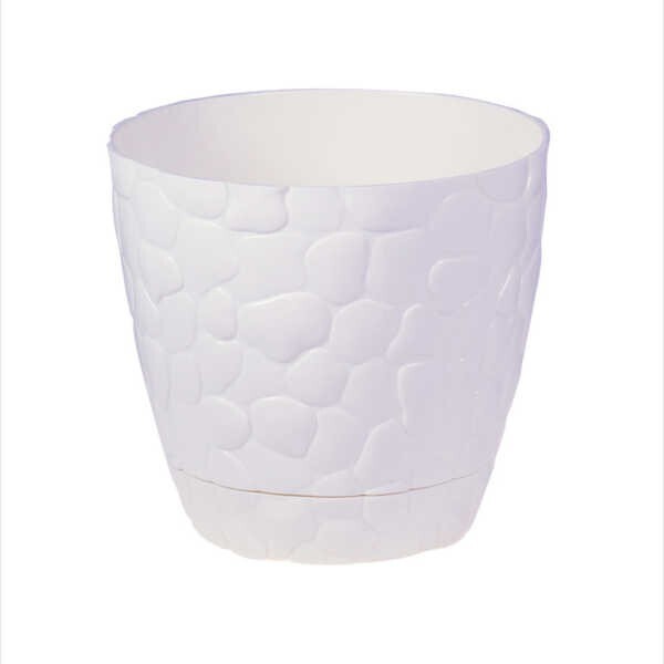 Используйте его для оформления террас, балконов, дач или комнатных растений. Материал и текстурированный дизайн делают его практичным и легким в уходе. Подставка, выполненная в виде продолжения стенки, придает изделию дополнительную устойчивость и завершенность образа. Можно сочетать с другими моделями из коллекции для создания гармоничного цветочного уголка.