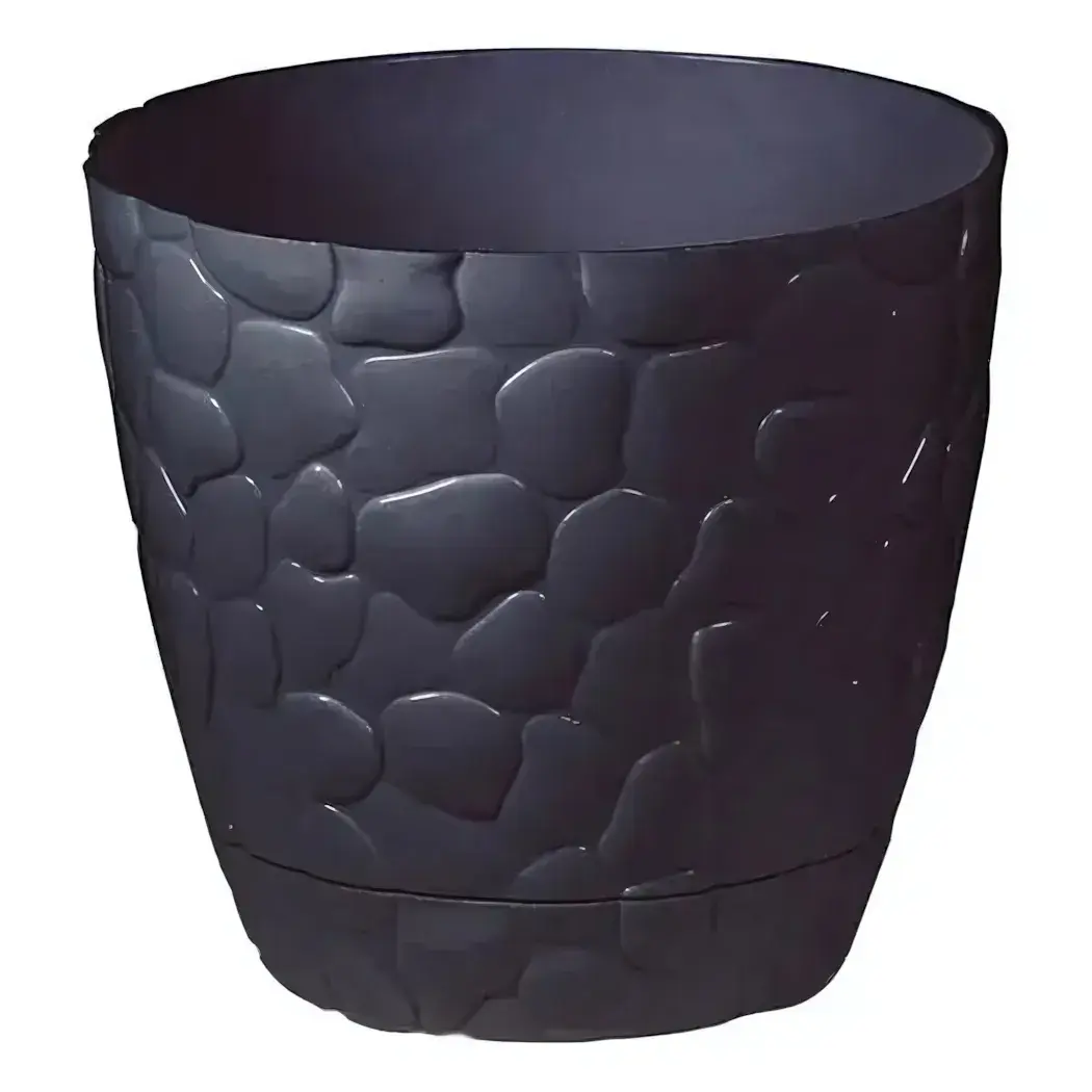 Кашпо пластиковое 'КАМНИ' D150мм, объем 1,4л, цвет коричневый ротанг