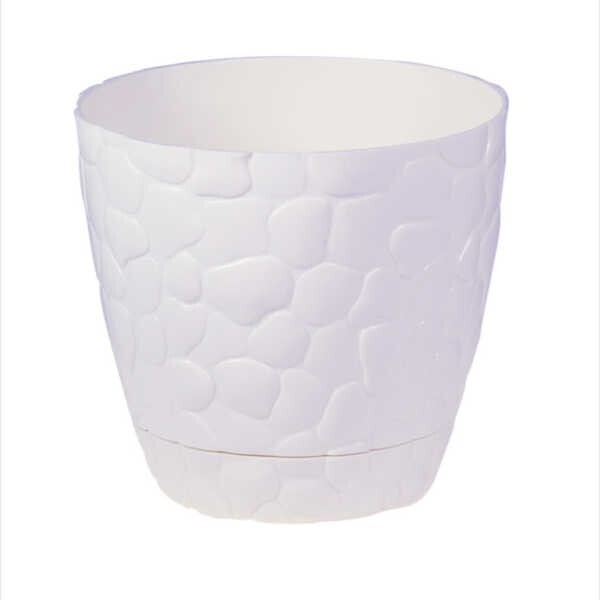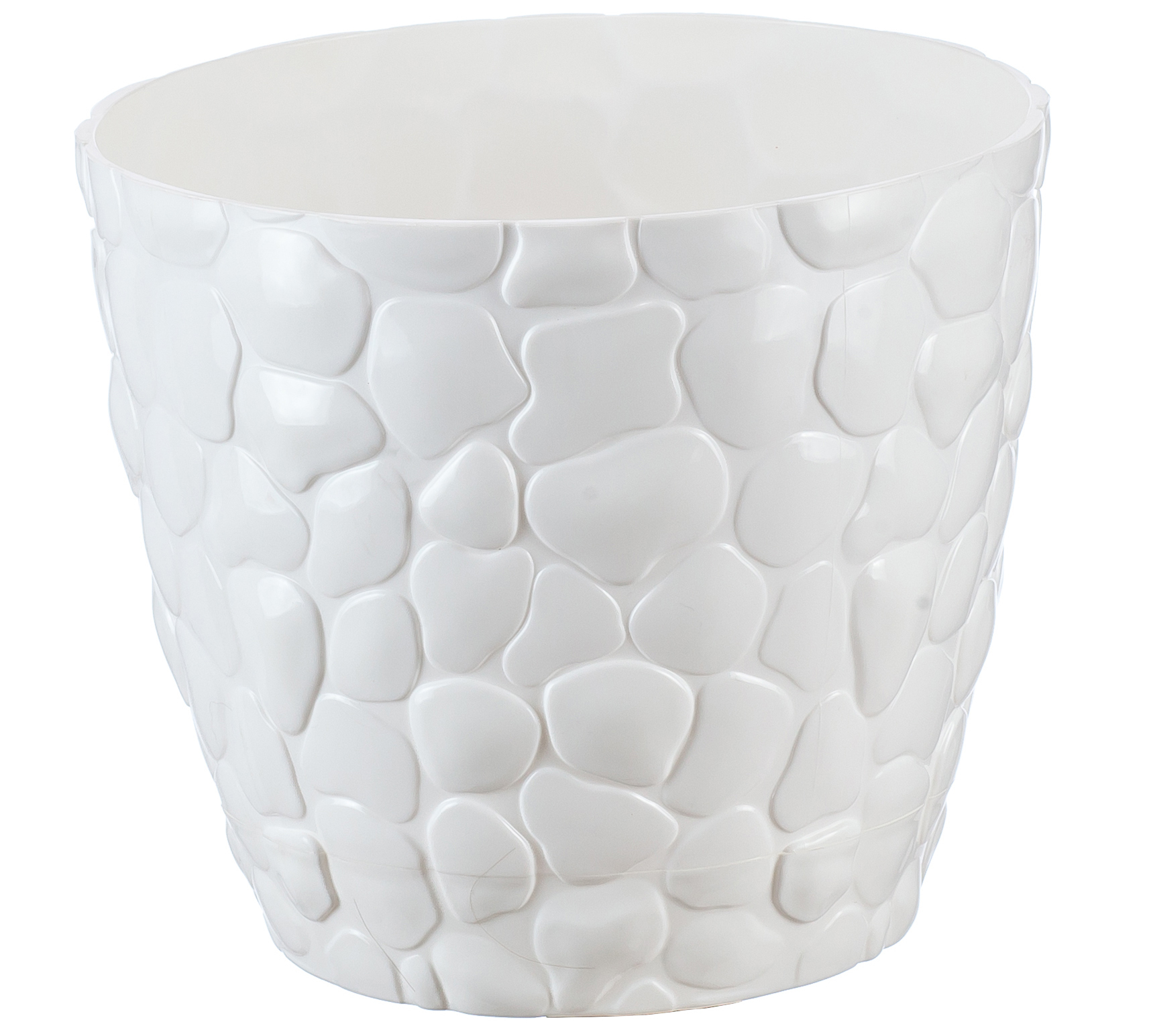 Кашпо пластиковое с подставкой, текстура камня, белый, D260мм, 8л