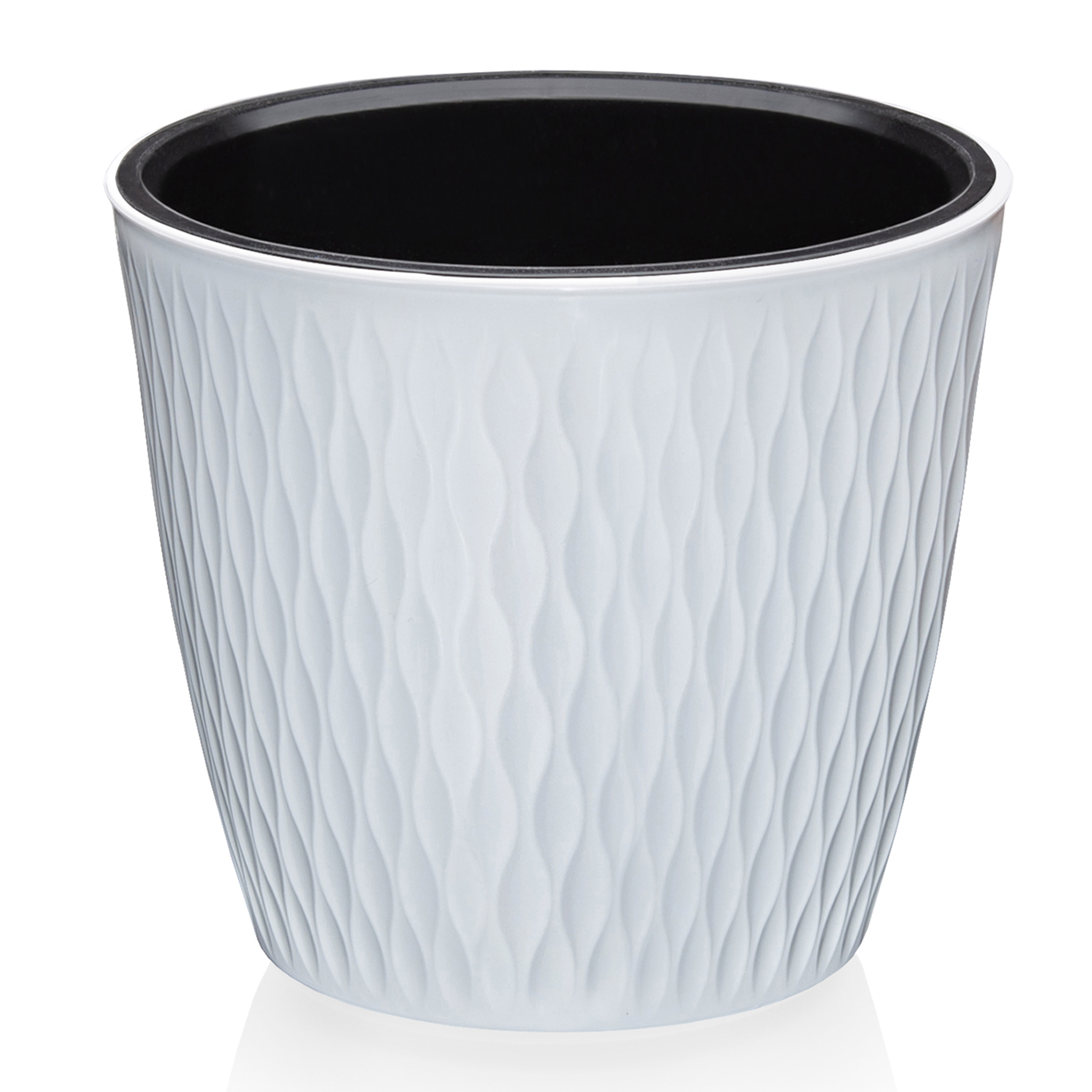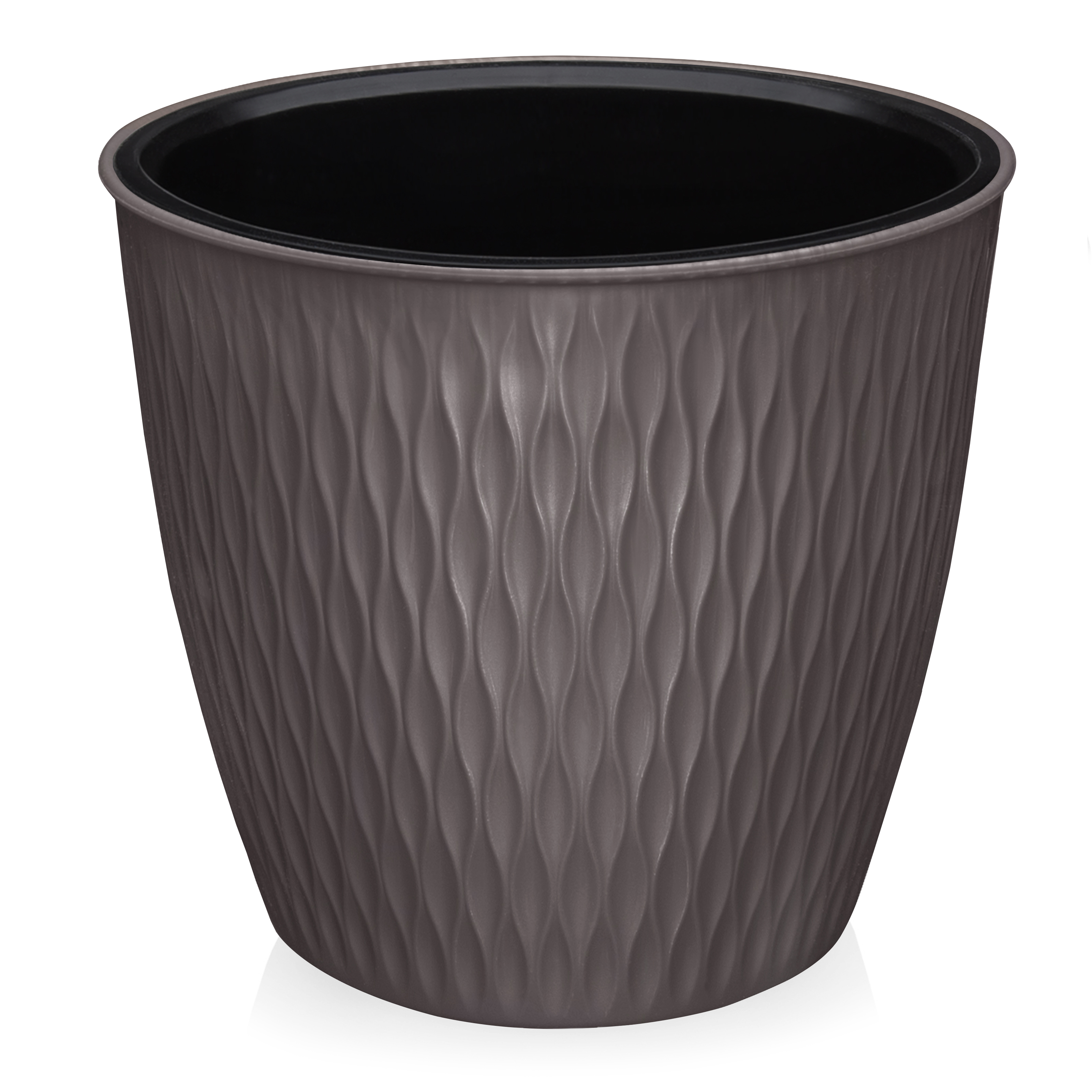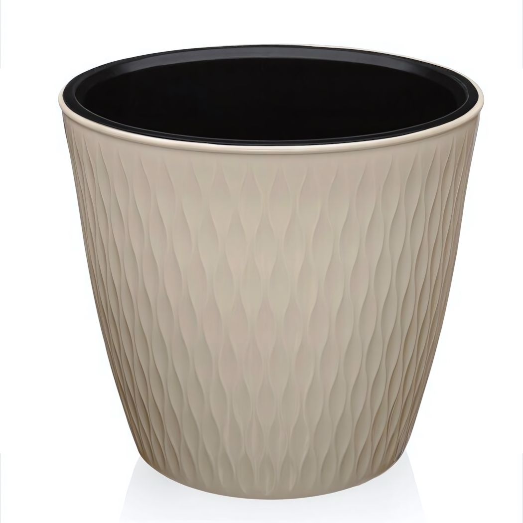 Рифленая текстура поверхности создает премиальный внешний вид, а классическая форма позволяет гармонично вписать кашпо в любой интерьер. Прочный пластик устойчив к механическим повреждениям и сохраняет презентабельный вид долгие годы.