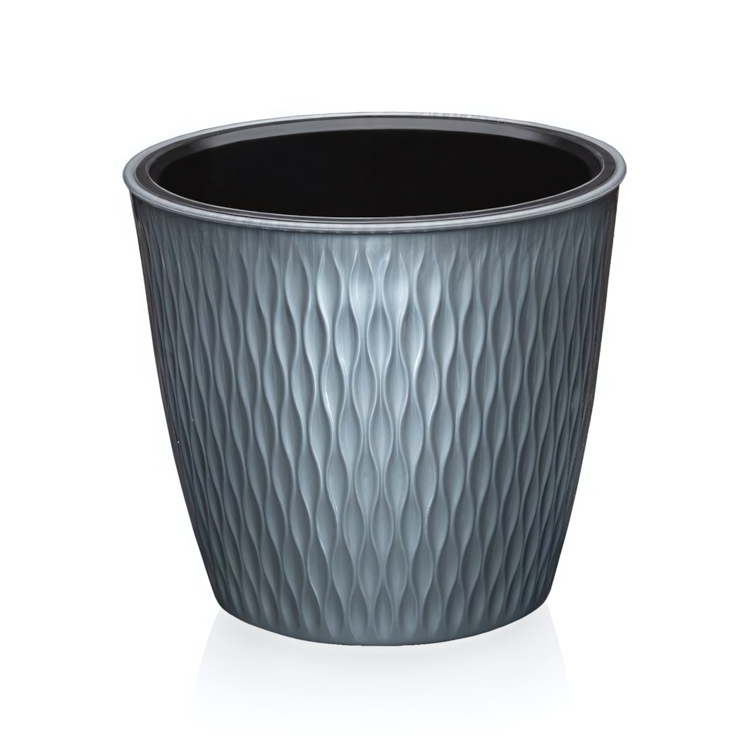 Преимущества данного кашпо: изготовлено из прочного пластика, устойчивого к воздействию внешней среды и механическим повреждениям. Его рифлёная поверхность придает привлекательный внешний вид и препятствует скольжению. Стильный серый цвет гармонично впишется в любой интерьер или садовый дизайн.