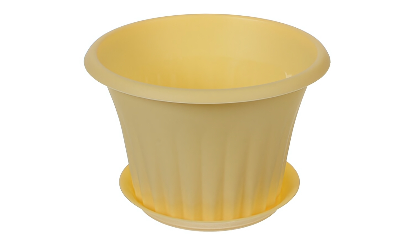 Кашпо с поддоном для защиты поверхностей, рифлёное пластиковое, 1 л, D16хH11 см, цвет банановый