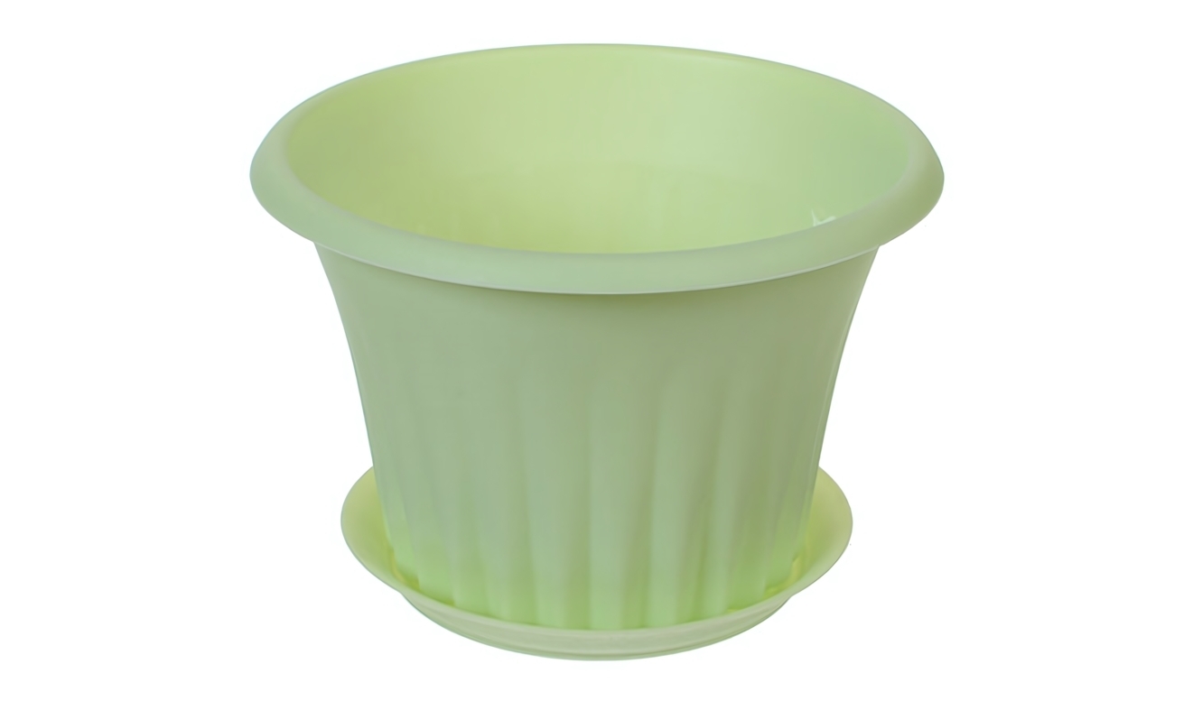 Кашпо имеет диаметр 160 мм и выполнено в нежном мятном цвете, что добавляет свежести в любой интерьер. Его рифленая поверхность не только привлекает внимание, но и обеспечивает надежный захват при переноске. Это кашпо станет отличным выбором для дома, офиса или сада.