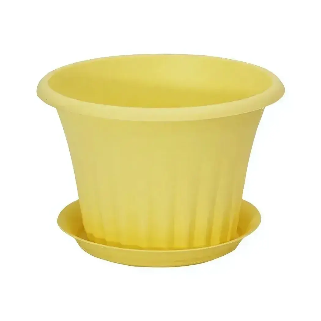 Кашпо пластиковое с подставкой 'КЭРОЛ' D140мм, 0,75л, банановый цвет, 14х14см