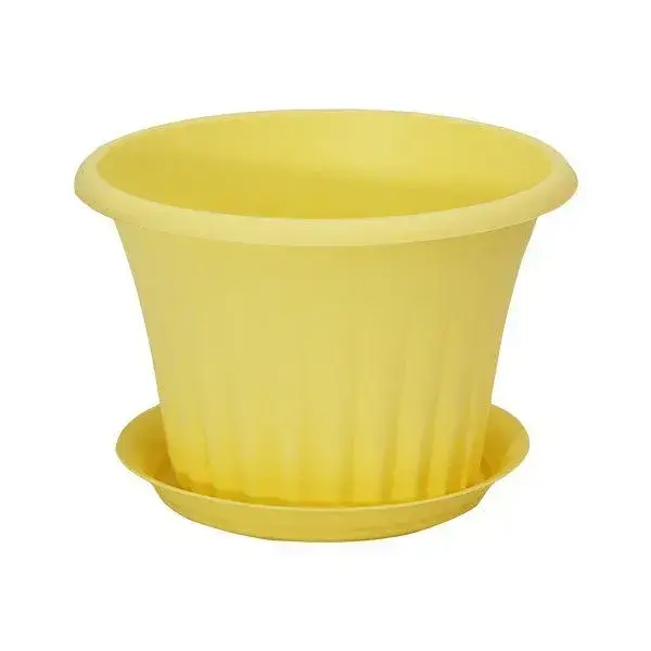 Кашпо с подставкой "КЭРОЛ" D180мм 1,5л, банановый, подставка 12х18см, комплект 15 шт