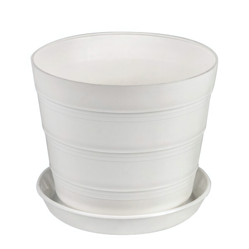 Кашпо пластиковое с поддоном 0,6 л, белое, классический дизайн для интерьера