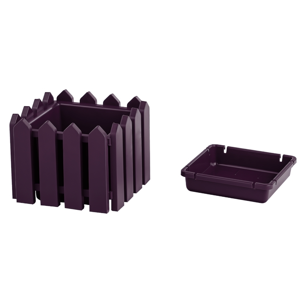 Кашпо квадратное с поддоном "Лардо", 19,5х19,5х15,6 см, лиловый, фактура «садовый заборчик»