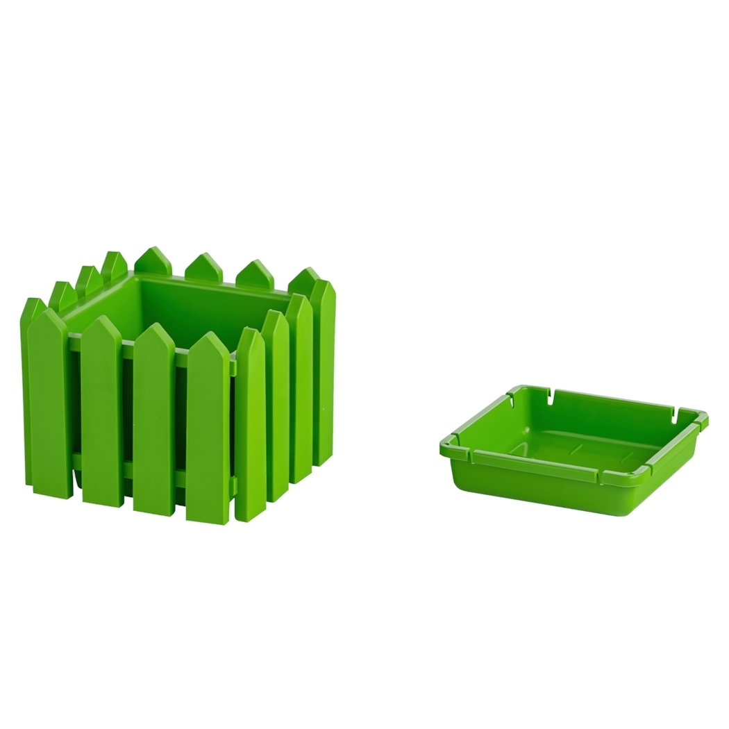 Кашпо подходит для различных растений и может использоваться как в помещении, так и на улице. Его уникальная фактура, напоминающая садовые заборчики, добавляет оригинальности вашему интерьеру. Легкий пластиковый корпус защищен от выцветания и негативного воздействия ультрафиолета, что делает его идеальным выбором для любого сезона.