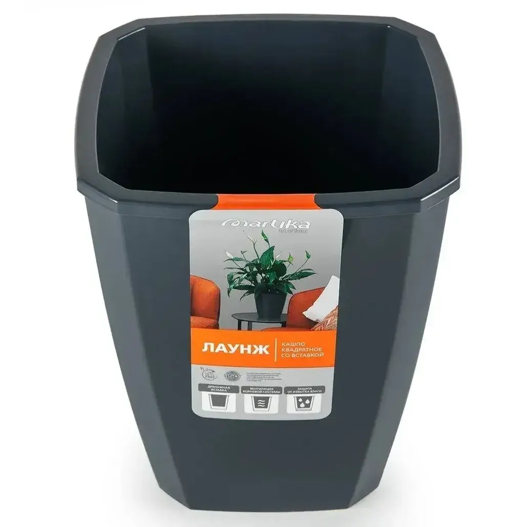 Кашпо квадратное «Лаунж» с дренажной системой, пластик, 2,4л/6л, цвет чернильно-серый