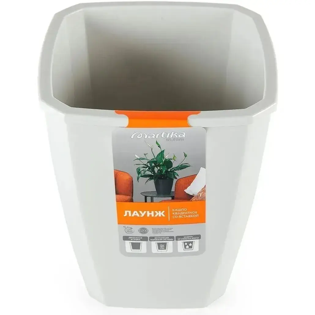 Кашпо квадратное с дренажной системой 'Лаунж', 2,4л/6л, пластик, цвет светло-серый