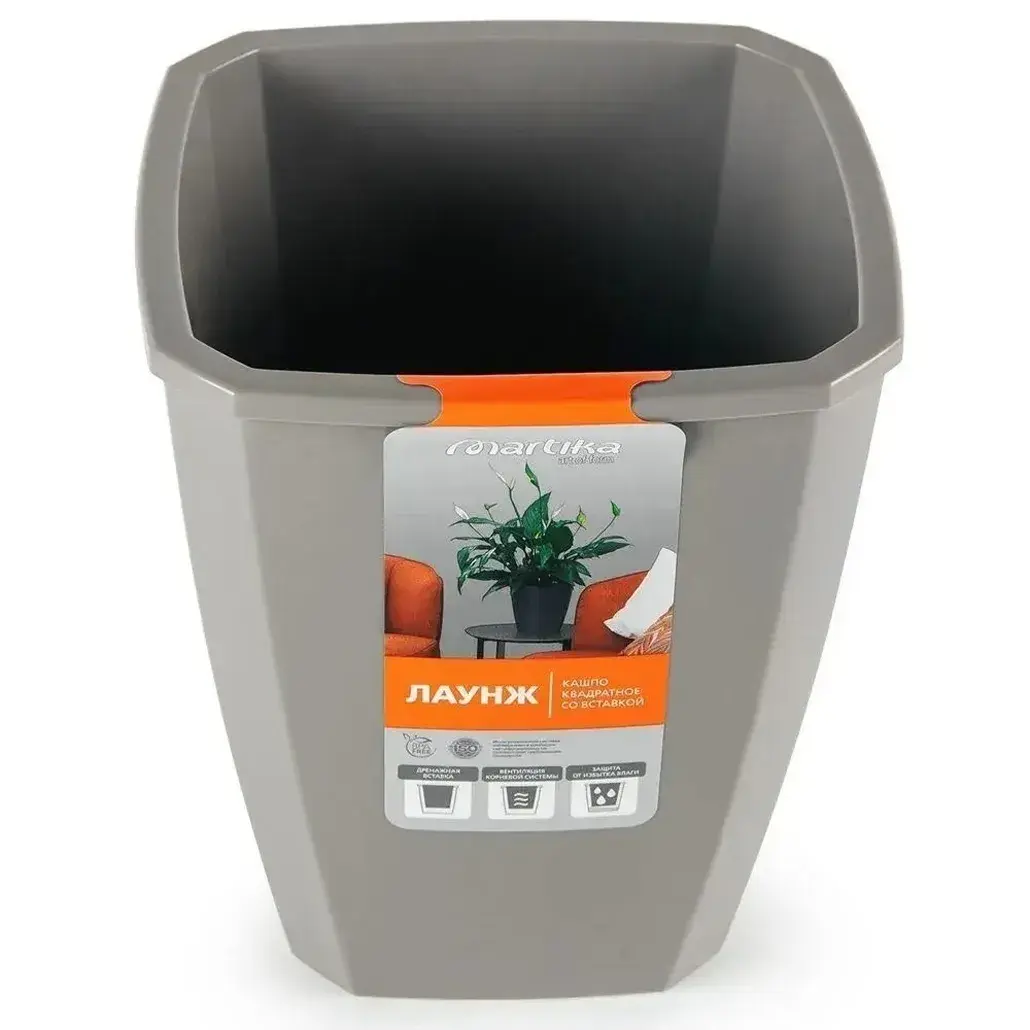 Кашпо квадратное с дренажной вставкой «Лаунж», 4л/8л, пыльно-серое