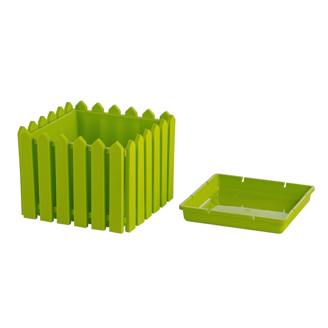 Кашпо с поддоном сочетает эргономику и оригинальный дизайн — идеально для создания уютного зеленого уголка дома или на балконе. Декоративный рельеф в виде изящного заборчика добавляет шарм даже самым простым растениям.