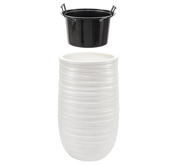 Кашпо пластиковое «Лайн» D37.5см H62см, 59л, морозоустойчивое, белое со вставкой