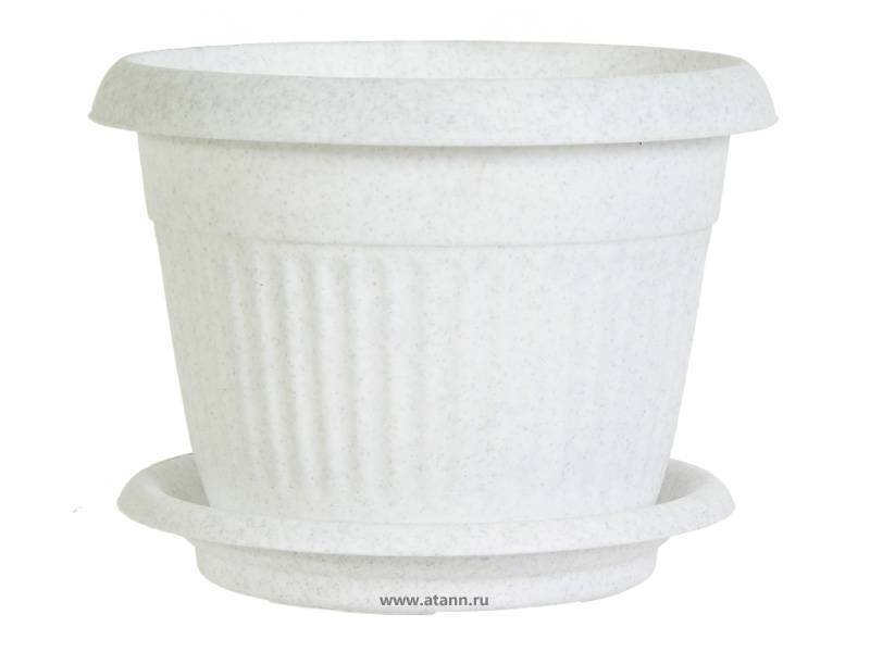 Кашпо «Ливия» с поддоном, 0,6 л, 120 мм, пластик, белый мрамор