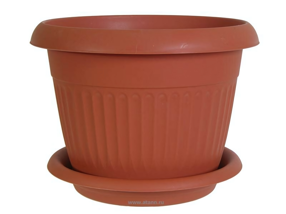 Размер кашпо составляет 320 мм в диаметре, что делает его универсальным для большинства растений. Коричневый цвет придаст вашему пространству теплоты и уюта. Не упустите возможность сделать ваш дом более зеленым и живым с кашпо "Ливия"!