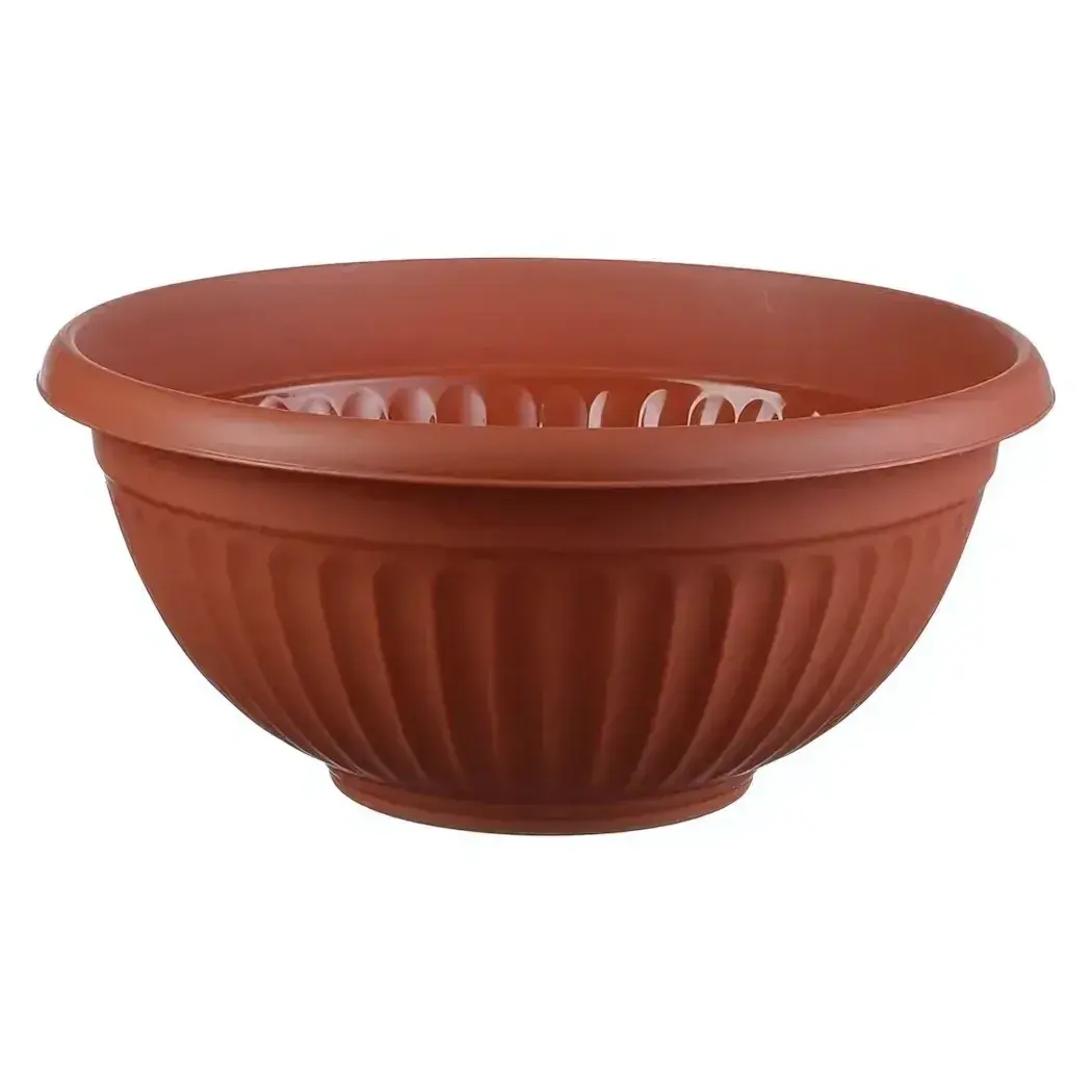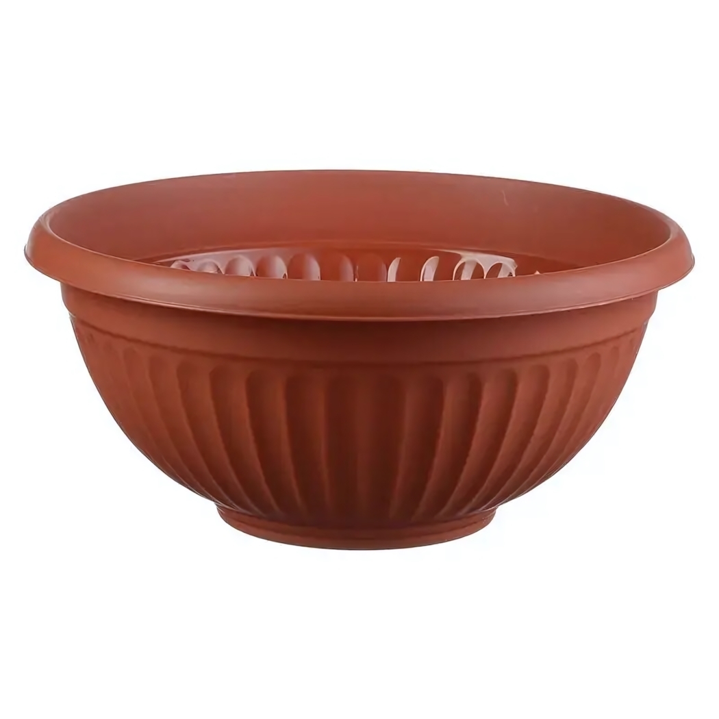Идеальное сочетание функциональности и эстетики: пластиковая миска-кашпо с рифленой поверхностью станет стильным акцентом в интерьере или на открытом воздухе. Закругленные края и продуманная форма обеспечивают безопасность и удобство использования.