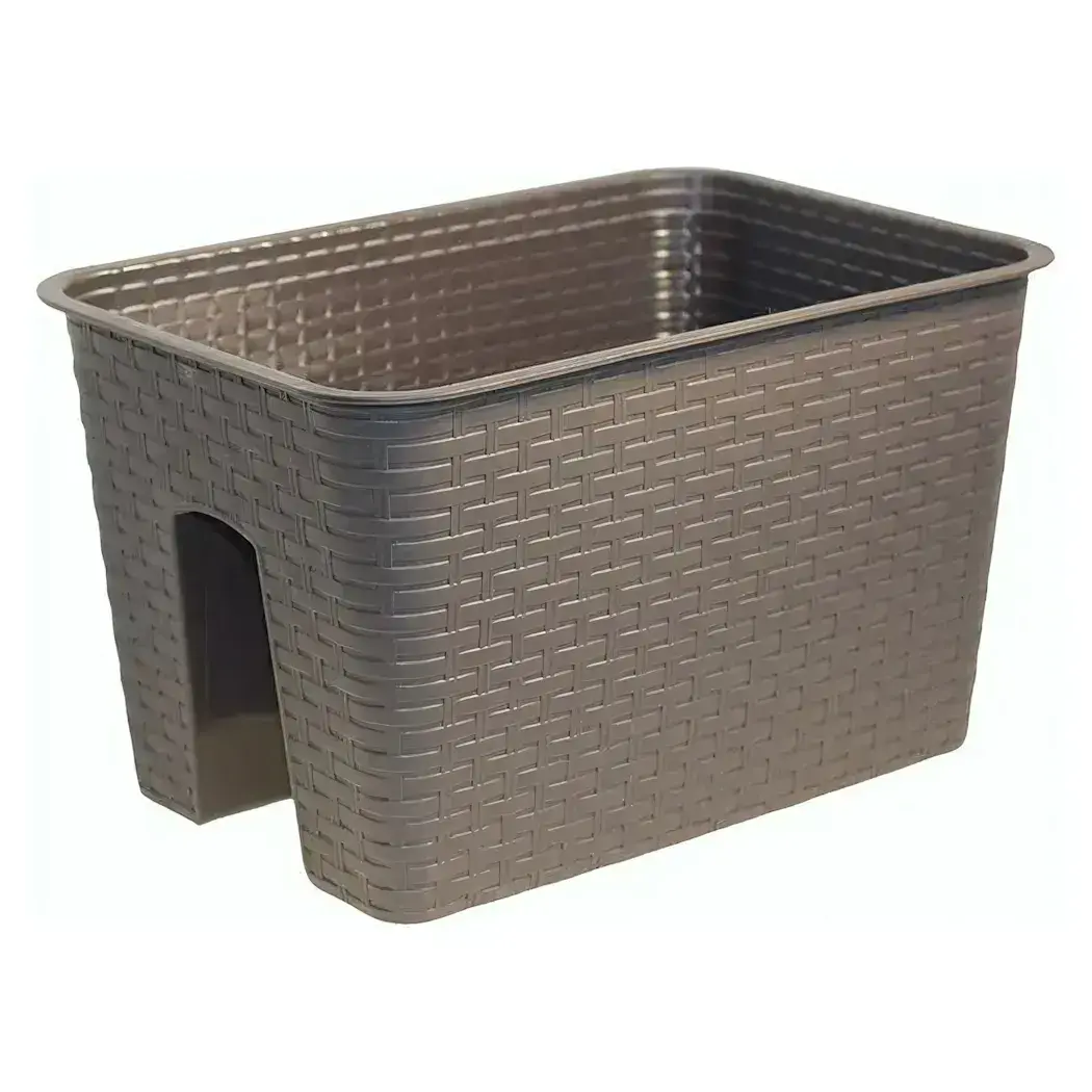 Кашпо на перила пластиковое 12л, цвет в ассортименте, текстура ротанга, удобное крепление