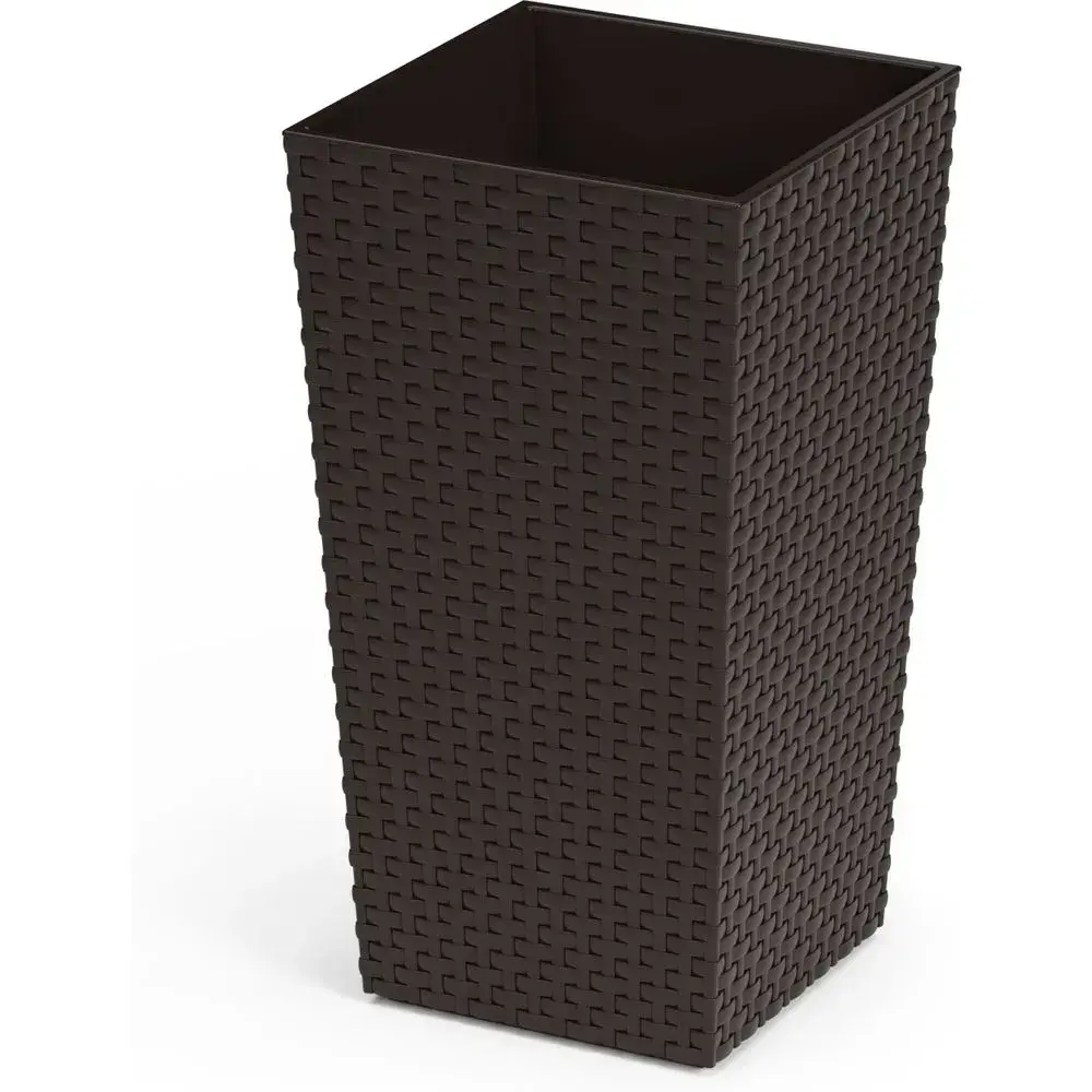 Кашпо изготовлены из морозостойкого пластика с детализированной текстурой плетения. Размеры 23х41.5 см позволяют размещать растения высотой до 35 см. Тёмно-коричневый оттенок «мокко» органично впишется в любую цветовую гамму.