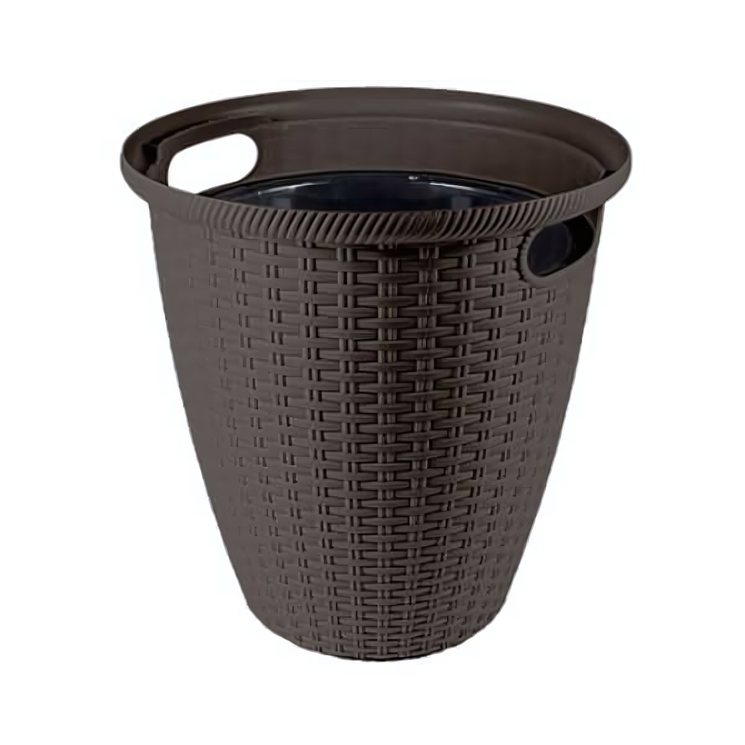 Кашпо напольное с горшком 2 в 1, пластик под ротанг, 38 см, 30+16 л, цвет горький шоколад, морозостойкое