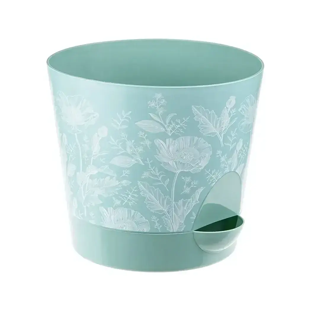 Декоративный рисунок с цветочным орнаментом маки создает эффект ручной росписи. Гладкая поверхность упрощает очистку, а устойчивое дно предотвращает опрокидывание. Изделие полностью готово к использованию — просто поместите растение в горшок и добавьте воду в специальный отсек.