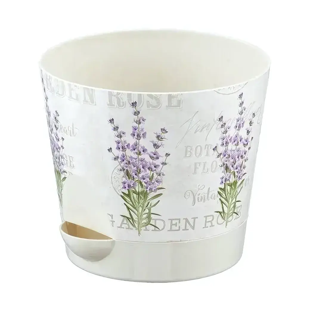 Элегантное кашпо "Ника Декор" сочетает практичность системы прикорневого полива и изысканный дизайн с лавандовым декором. Идеальное решение для тех, кто ценит комфорт в уходе за растениями и эстетику в интерьере.