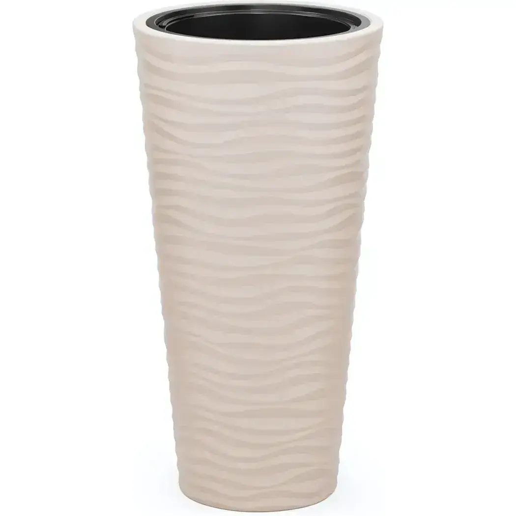 Создайте уютную атмосферу в саду или интерьере с кашпо, сочетающим функциональность и стиль. Рельефный волнообразный узор и светлый бежевый оттенок добавят изысканности любому пространству.